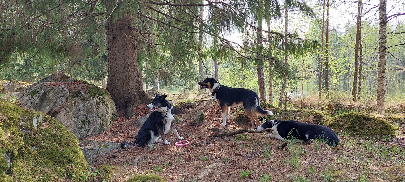 Tärkeitä tiiminjäseniä tilalla ovat bordercolliet Nalli, Paddy ja Tim. Ne ovat korvaamaton apu lammastöissä. Kokoavat lampaita perinnebiotoopeilta, auttavat laidunsiirroissa ja lastauksissa sekä talviajan ruokinnoissa.